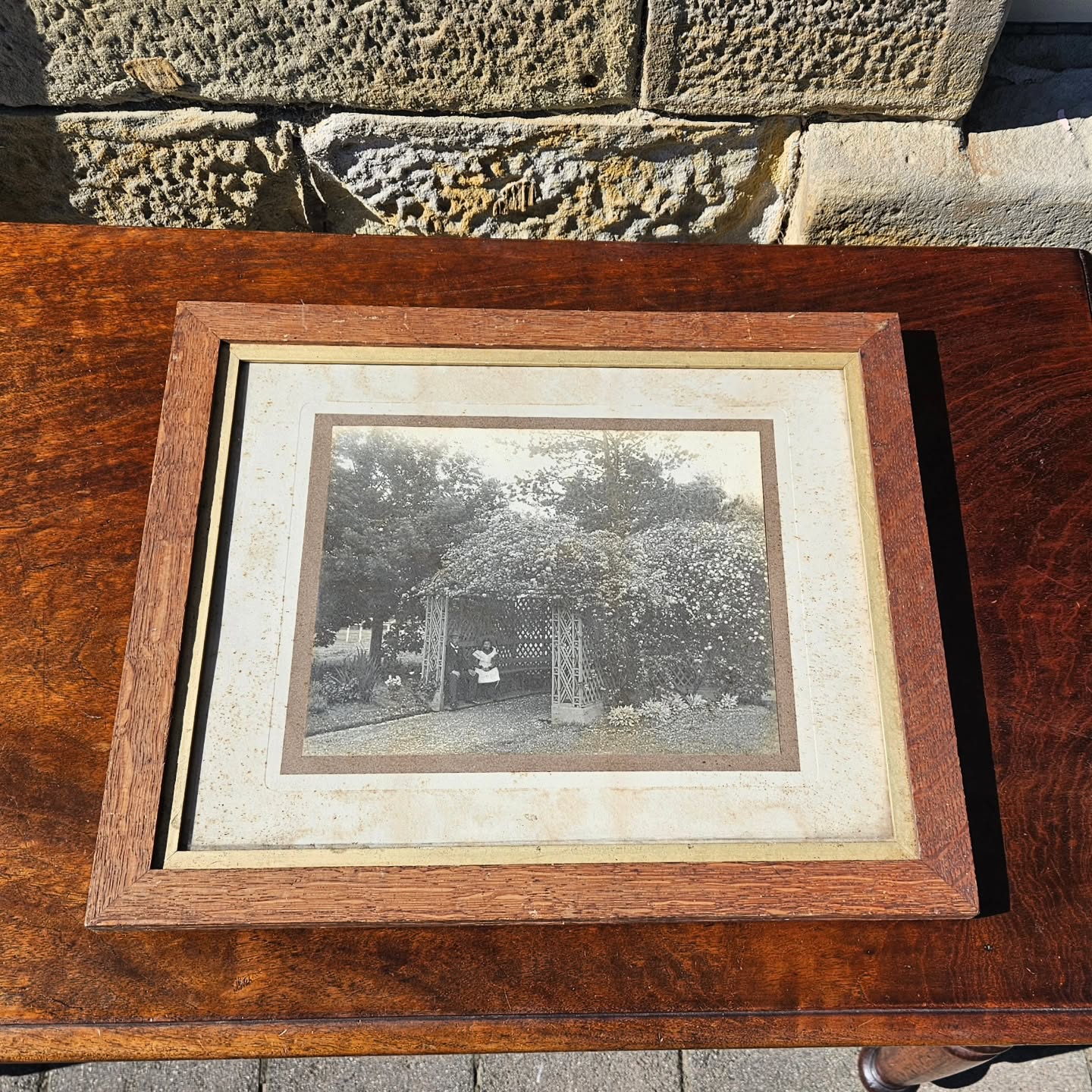 3. A ripper of an Edwardian rose arbour, the proud owners photographed. Original oak frame,mount & glass. The mount foxed, the photo fine. Australian c 1900.
