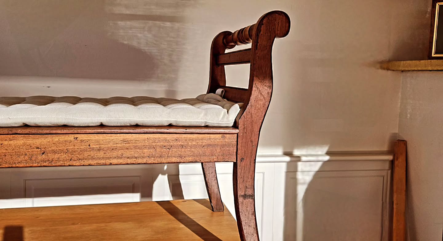 An elegant Australian cedar Grecian settle, for a farmhouse parlour or smart kitchen,