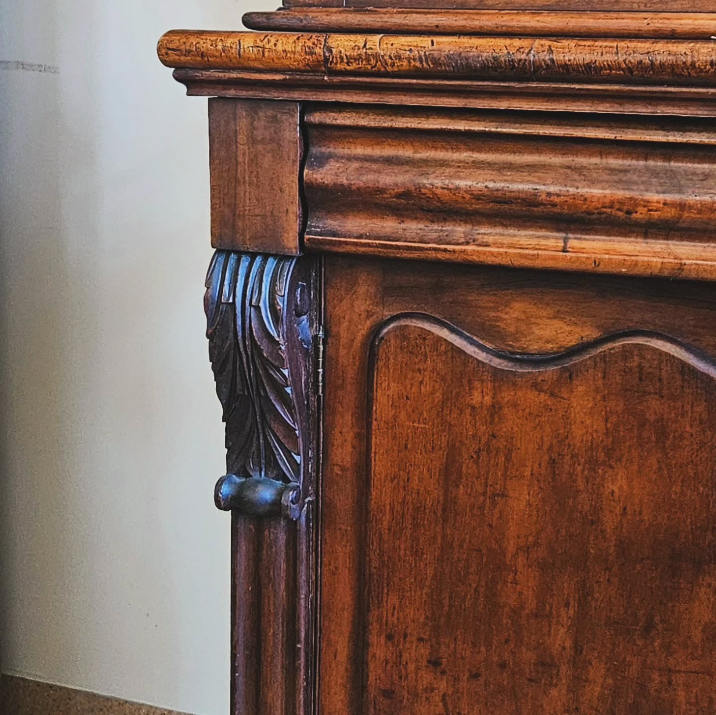 The late Dr Clifford Craig, furniture historian, collector & G.P of Launceston, had a wonderful observation on Tasmanian colonial furniture, that it had ‘Tasmanian light in it’. Reflecting the higher u.v content of the thinner atmosphere by virtue of its southerly latitude, old Tasmanian cedar furniture & house joinery has often gone this lovely colour over time. It is part of the genus loci – the spirit of place. So often this is ruined with restoration. English & American vernacular furniture collectors hunger for this honest & appealing skin, shown in this bookcase.