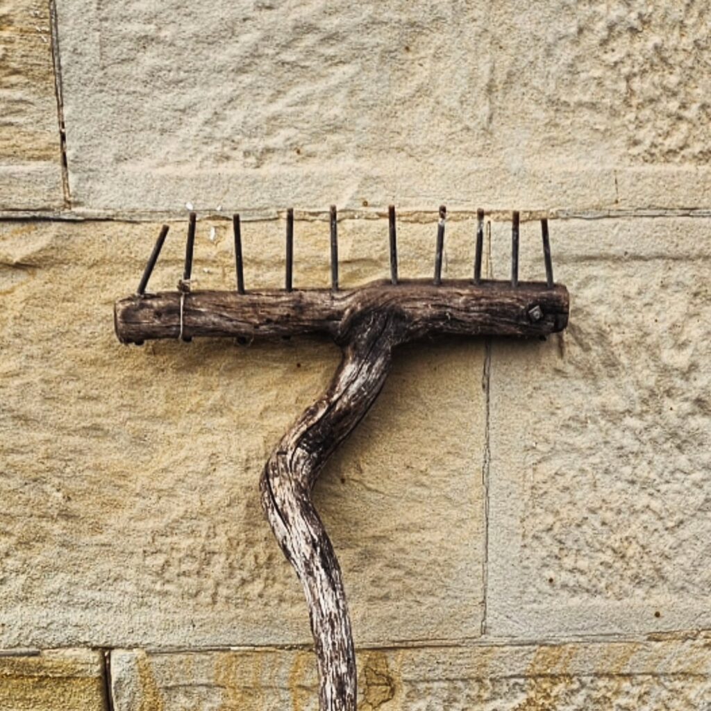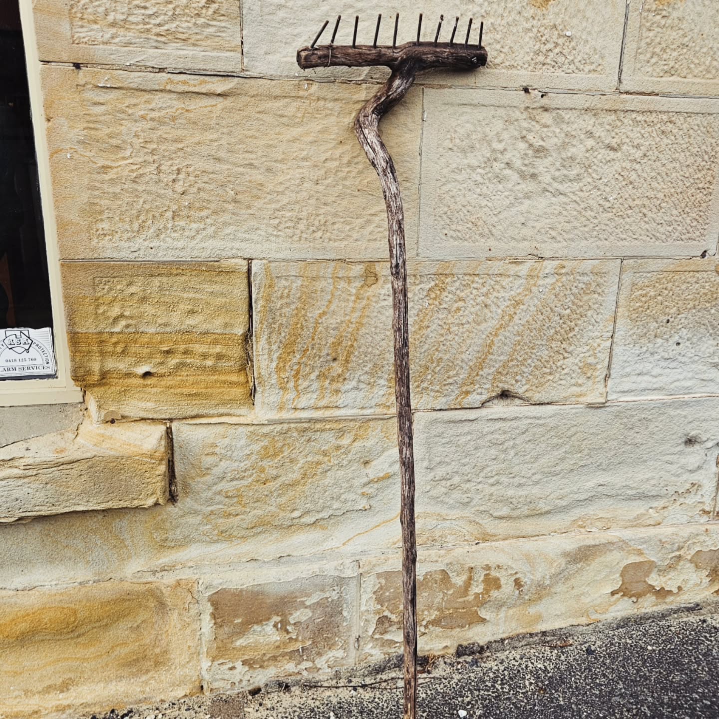 Day 8. A charming & now rare Tasmanian farm made vernacular seed rake. Of twisted gum with square end galvanized nails – surprisingly natural to use.