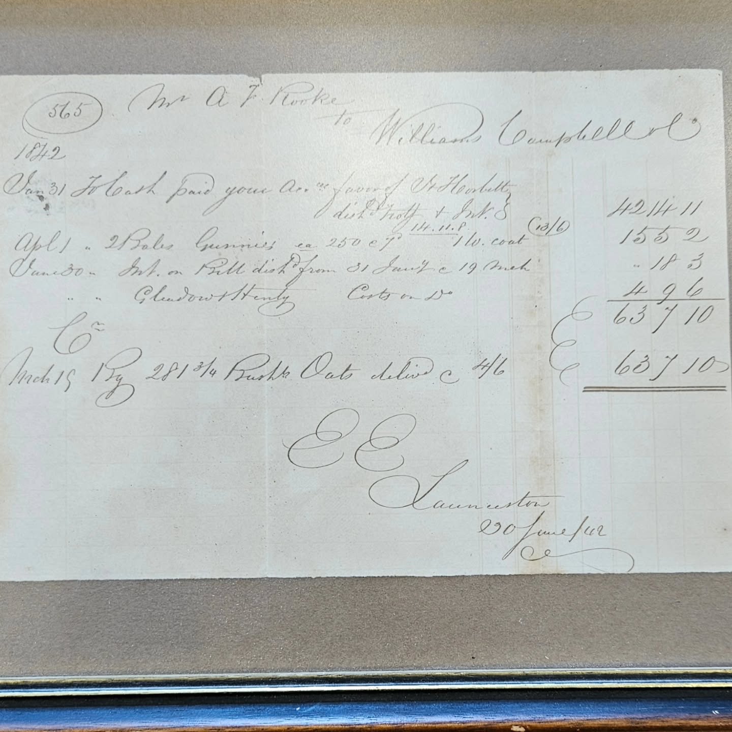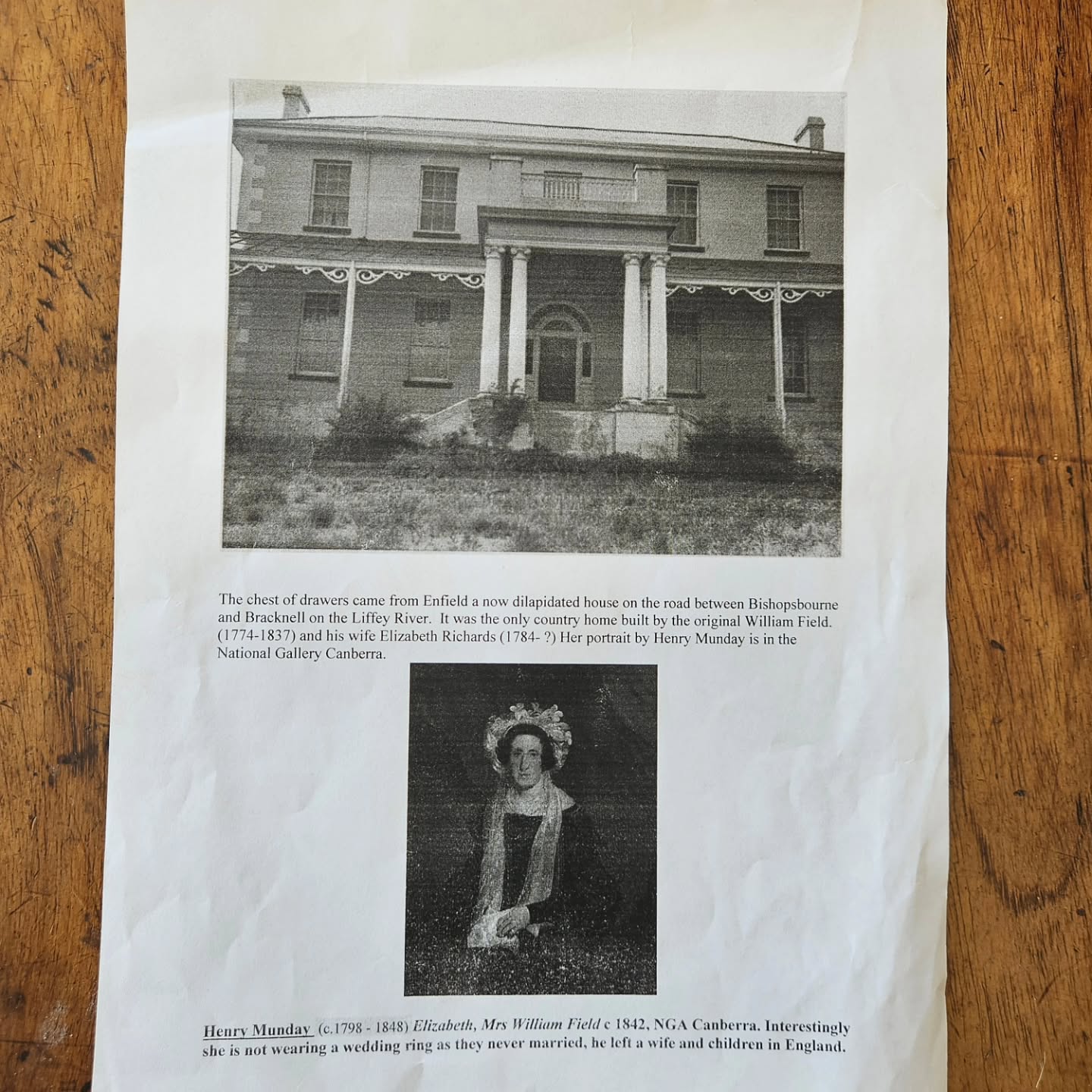 The right, with two ‘lum hat’ drawers, with a receipt found in the back to Adophus Rooke (1812-1881), brewer & farmer of Deloraine, c1840