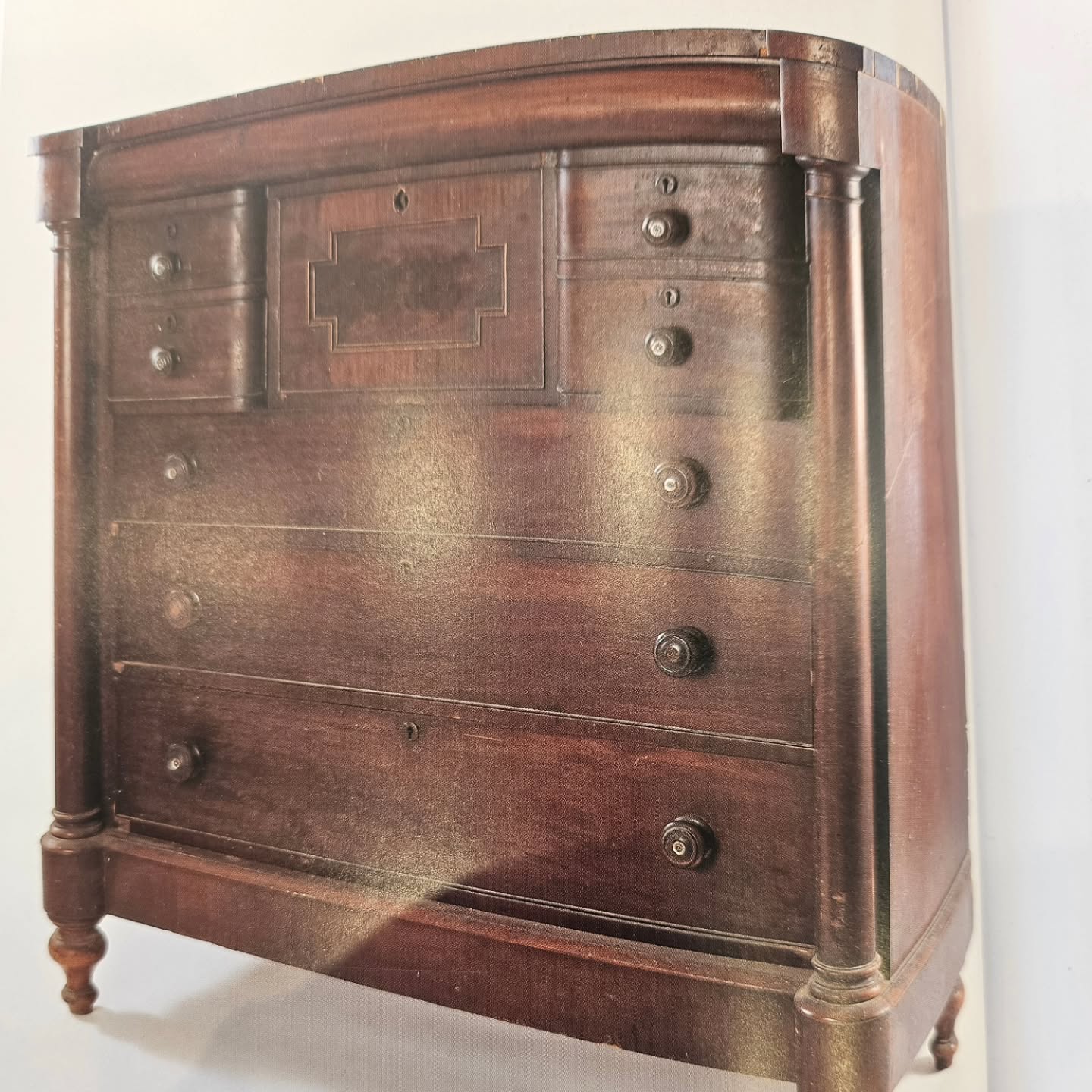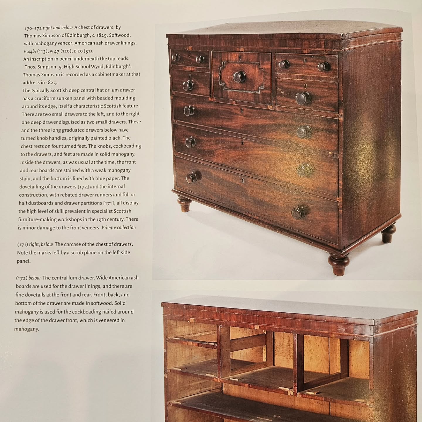 By comparison with Scottish cabinet maker made regional chests of drawers, illustrated in Bernard D Cotton’s ‘Scottish Vernacular Furniture’, it is suggested that both of these were made by the same as yet unknown Scottish cabinet maker, working in North Western Tasmania. Had they been trained in the workshop of Thomas Simpson of Edinburgh, c 1830 -50?
